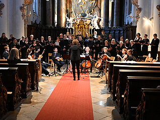 Das „Concerto in B-Dur“ von Johann Anton Reichenauer (1694-1730), der in Nordböhmen (Bílina) geboren und in Südböhmen (Neuhaus) gestorben ist, spielte das Orchester des Rohrer Sommers unter der Leitung von Simon Ullmann, das Oboe-Solo oblag Johanna Boehm. Aus dem an Böhmen angrenzenden Sachsen, aus Klingenthal, stammte Robert Stark (1847-1922), der in Würzburg gestorben ist. Von ihm war die „Serenade in Es-Dur (Op. 55)“ für zwei Klarinetten und zwei Violincelli zu hören. Die Klarinetten spielten Bärbel Kübler und Stefan Henneberger, die Celli Simon Ullmann und Gabriele Koch. Nach Italien ging es mit der „Duo-Sonate in F-Dur RV 6“ von Antonio Vivaldi (1678-1741), intoniert von Anna Kocher mit dem Hackbrett und Caecilia Kocher mit der Violine. Zurück nach Nordböhmen führte das „Trio in D-Dur“ für Klarinette, Horn und Violincello von Florian Leopold Gassmann (1729-1774). Dieser ist im nordböhmischen Brüx geboren und in Wien verstorben. Stefan Henneberger (Klarinette), Simon Ullmann (Cello) und Lothar Palsa (Horn) spielten das Stück eindrucksvoll. Einen Abstecher nach Mähren gab es mit der „Sinfonia in f-Moll“ von Franz Xaver Richter (1709-1789). Denn dieser wurde im mährischen Holleschau geboren, sein Leben endete in Straßburg. Das Orchester des Rohrer Sommers intonierte das dreisätzige Werk. Den krönenden Abschluss bildete der Chor des Rohrer Sommers unter der Leitung von Stephanie Kocher. A cappella sang das Ensemble das vierstimmige „Modlitba“ (Gebet) von Friedrich Smetana (1824-1884), der aus Litomyšl in Ostböhmen stammte und in Prag gestorben ist. Smetanas 200. Geburtstag wurde damit gewürdigt. Zusammen mit dem Orchester sang der Chor schließlich die „Missa Sancti Stephani“ von Franz Ignaz Tůma (1704-1774) zum 250. Todesjahr des Komponisten. Dieser stammte aus Kostelec nahe dem Adlergebirge, in Wien ist er gestorben.