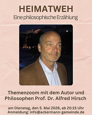 Die Ackermann-Gemeinde hat den Heimatbegriff seit ihrer Gründung immer wieder thematisiert, mal als Ort, mal als soziale Größe, als Recht oder als Emotion. Und auch Alfred Hirsch hat eine persönliche, familiäre Verbindung zu dem Thema. Doch all das soll im Themenzoom am 5.5. besprochen werden: Herzliche Einladung!